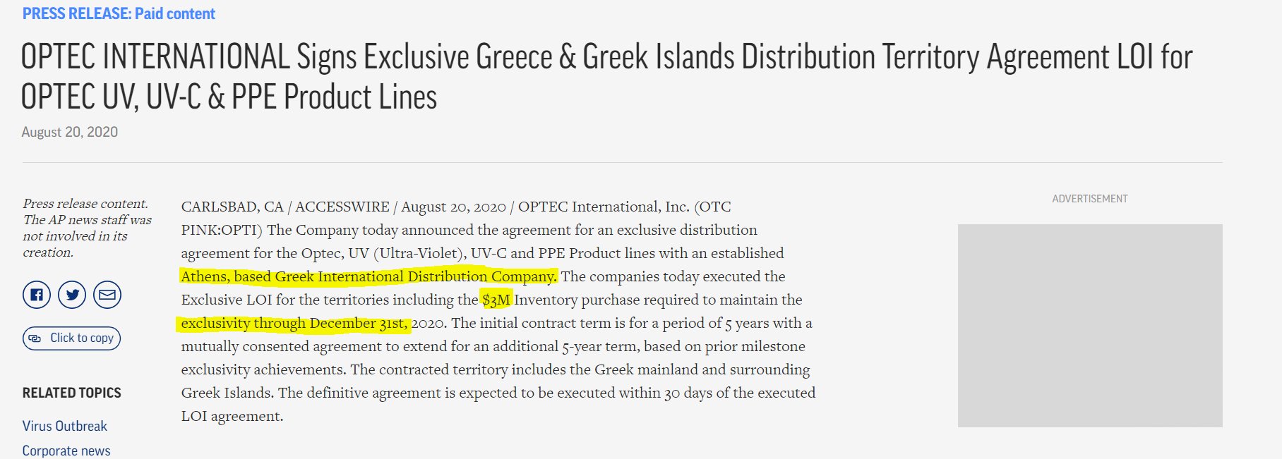 Weshield Responds To Optec International Inc Information Opti Stock News